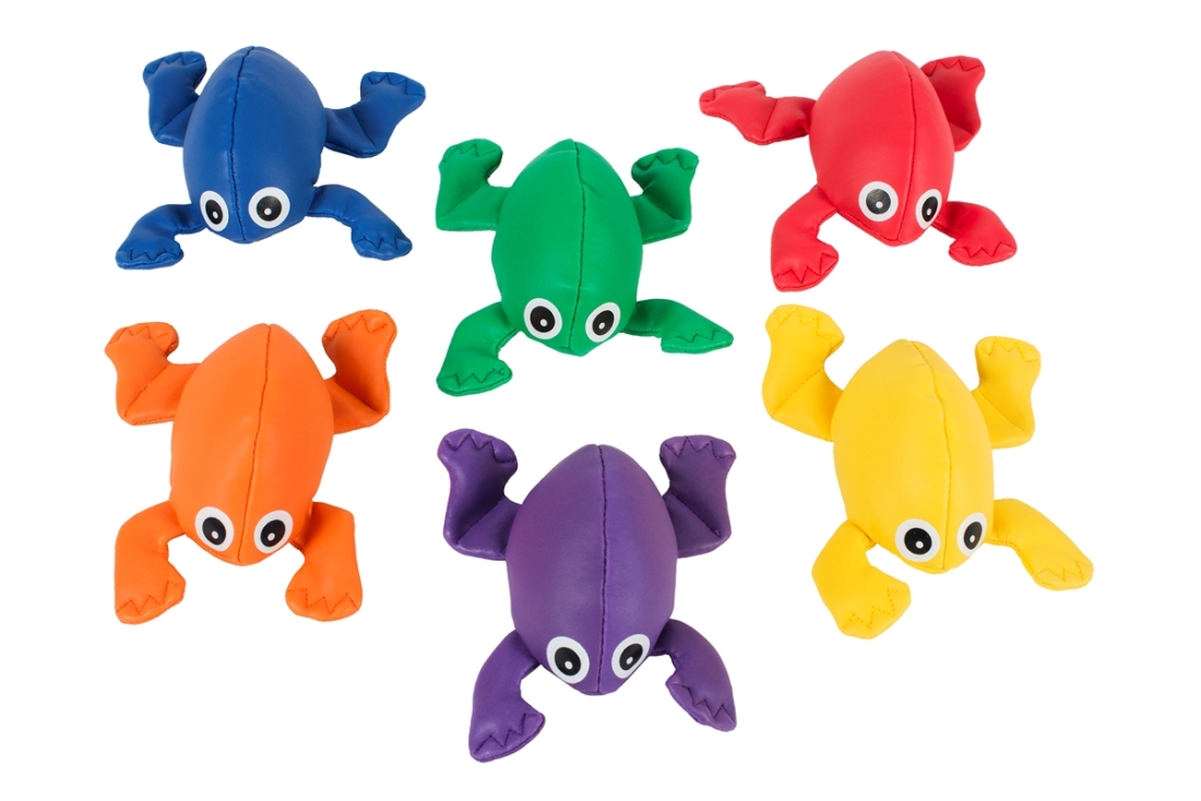 Disse bønneposer formet som frøer gør kaste- og gribelege både sjove og sansestimulerende. De bløde, fleksible frøer er fyldt med små plastpiller, som giver en behagelig vægt og en tydelig taktil oplevelse, der former sig efter hånden.