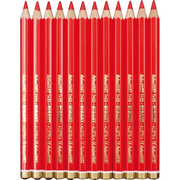 Med belcolART Farb Gigant farveblyanter i lys rød får børn og unge mulighed for at tegne med en tydelig og levende farve, der fremstår klart – selv med let tryk. Den ekstra tykke og bløde mine glider let hen over papiret og efterlader en jævn og kraftig farvespor.