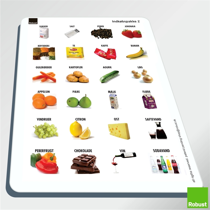 BEMÆRK: de enkelte piktogrammer er alle monteret med en velcropude på bagsiden, lige til at trække af piktogramarket, og bruge på din Robust tavle eller ugeplan