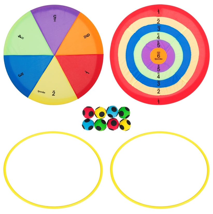 Børnene kaster de bløde velcrobolde mod målene – boldene hæfter sig fast, så det bliver nemt og sjovt at øve kast, sigte, reaktion og samarbejde. Et sikkert hit til både leg, idræt og motoriktræning.