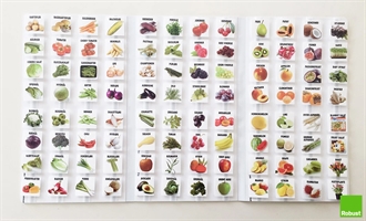 Pakken indeholder et IndkøbsBoard og fem StoreBoards med 480 piktogrammer, indeholdende dagligvarer, madvarer, grøntsager, kølevarer og frostvarer.