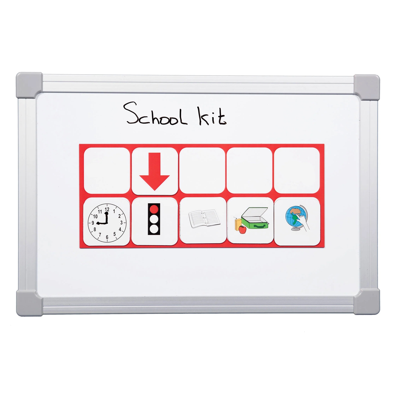 Brug pigtogrammer fra Time Timer og lav dit eget skema. Pigtogrammerne er magnetiske som gør at de er nemme at sætte op, rykke rundt med så de nemt kan tilpasses de enkelte behov. Brug dette School Kit til at lave et nemt overblik for personener med særlige behov, folk med kognitive vanskeligeheder så som Autisme, ADHD, Aspergers osv. Det er med til at skabe god tidsforståelse og overblik over en hel dag, eller du kan designe din tavle til kun at dreje sig om en enkelt time i skolen, det kunne være en dansk eller matematik time. Når eleven kan visualisere det for sig, har han/hun langt nemmere ved at forstå og skabe overblik, hvilket giver ro og koncentration til at udvikle sig fagligt. Måske kan det lige frem skære noget undervisningstid ned så der bliver plads til også at arbejde med det sociale.