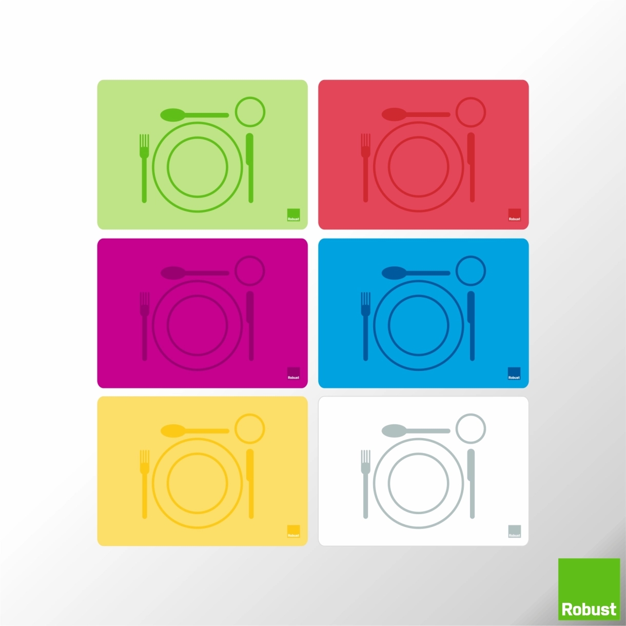 Robust dækkeservietter har et simpelt og let overskueligt layout, som kort og præcist viser, hvad man bruger når man spiser.