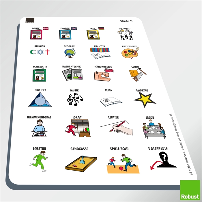 BEMÆRK: de enkelte piktogrammer er alle monteret med en velcropude på bagsiden, lige til at trække af piktogramarket, og bruge på din Robust tavle eller ugeplan