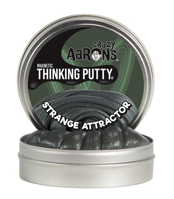 Strange Attractor Thinking Putty har også et sind. En dyb, mystisk sort med subtil grønne gnistre, den kommer til live, når den er opladet med den medfølgende magnet.
